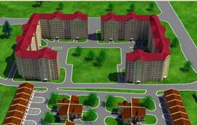 | Рис. 4: Комбинированный жилой дом на 4 семьи | Рис. 5: Сблокированный жилой дом на 8 семей (таун-хаус) |