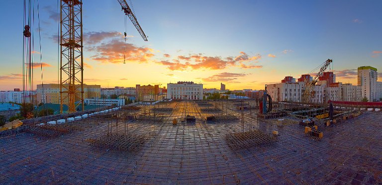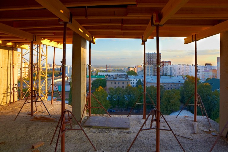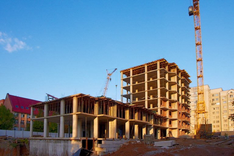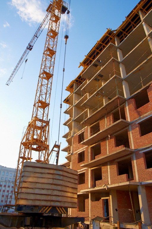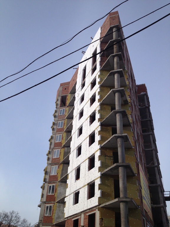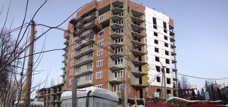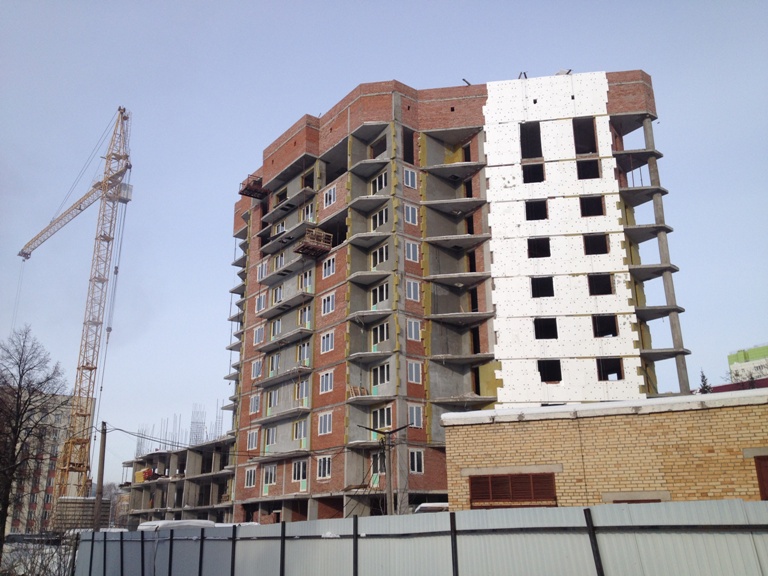 Секция В построена полностью, секция Б – 4 этажа, секция А – цоколь.