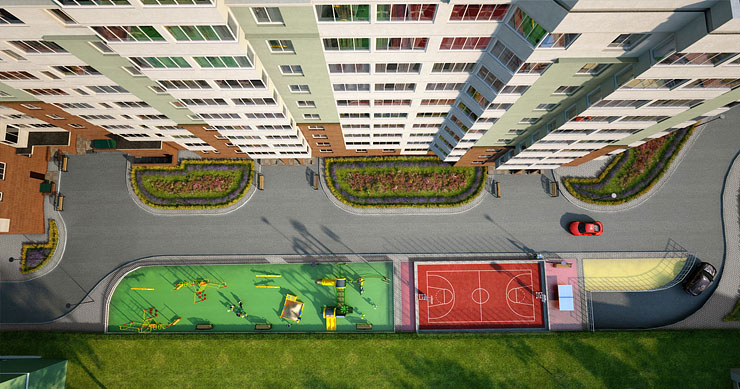 Строящийся комплекс окружают банки, страховые компании, различные агентства (туристические, юридические и другие), книжные магазины, продуктовые супермаркеты, кафе, рестораны и многое другое. Словом, инфраструктура жилого комплекса развита.