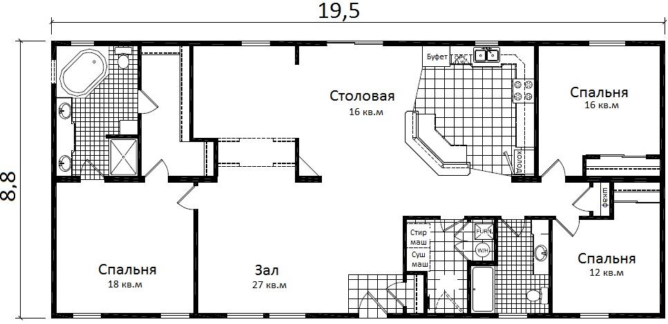Мы отобрали для вас так называемые дома «американского» типа с комфортной индивидуальной планировкой. Как правило, они предлагаются в одноэтажном исполнении. Зачем узкие лестницы, по которым не пронести современную комфортабельную мебель? Такие планировки не имеют узких коридоров, почти бесполезных закутков под лестницами и прочего непонятно для чего применимого пространства. А это- экономия даже по 27000 руб за каждый такой метр. Но дома могут быть изготовлены и двухэтажными.