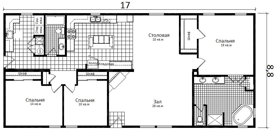 - оптимальное зонирование дома «в американском стиле» без узких коридоров и лестниц. Вы избавлены от проблем затаскивания мебели по узким лестницам, не переплачиваете за бесполезные квадратные метры коридоров и проходов.