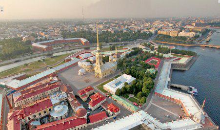 | Вид на Гренадерский мост и шпиль Петропавловской крепости |