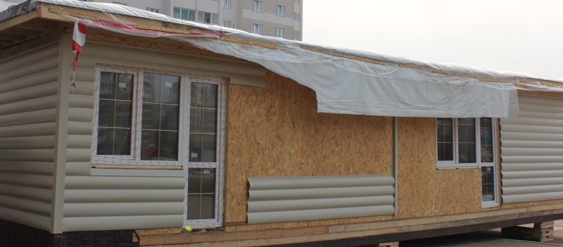 Выставочный образец дома площадью 72 кв.м. устанавливается на парковке перед торговым центром Звездный в мкр. Сипайлово.
