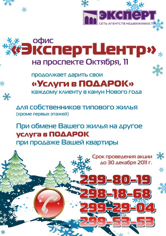 Новогодняя акция от офиса "ЭкспертЦентр" на пр.Октября, 11. Только с 20 ноября по 30 декабря 2011 г. "УСЛУГА В ПОДАРОК"