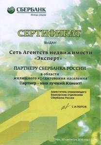 Сеть Агентств Недвижимости «ЭКСПЕРТ» - официальный партнер Сбербанка и пятерки крупнейших банков Уфы и Республики Башкортостан.